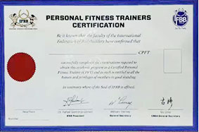 由国际健美协会授权,国家体育总局社会体育指导中心及中国健美协会主办,为完成IFBB国际私人健身教练课程学习并通过考试的学员,颁发的国际健身教练证书。